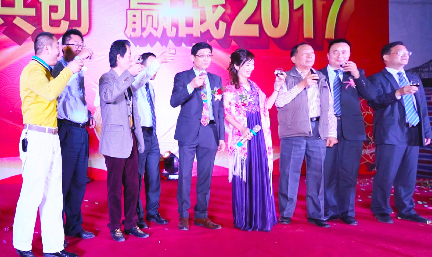李蜜南董事长、郑宝雯总经理、公司的高管,和在场的所有人,共同举杯,祝贺新年、祝贺美好未来,进入愉快的晚宴当中。